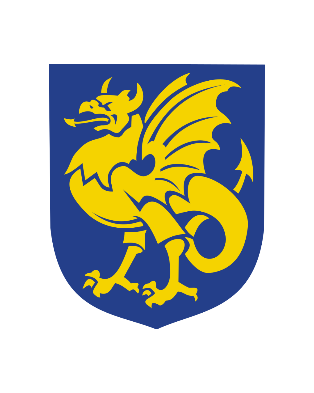 Das Wappen Bornholms zeigt einen goldenen Basilisken mit Flügeln auf blauem Grund, der symbolisch für die Befreiung von der schwedischen Herrschaft 1658 steht.